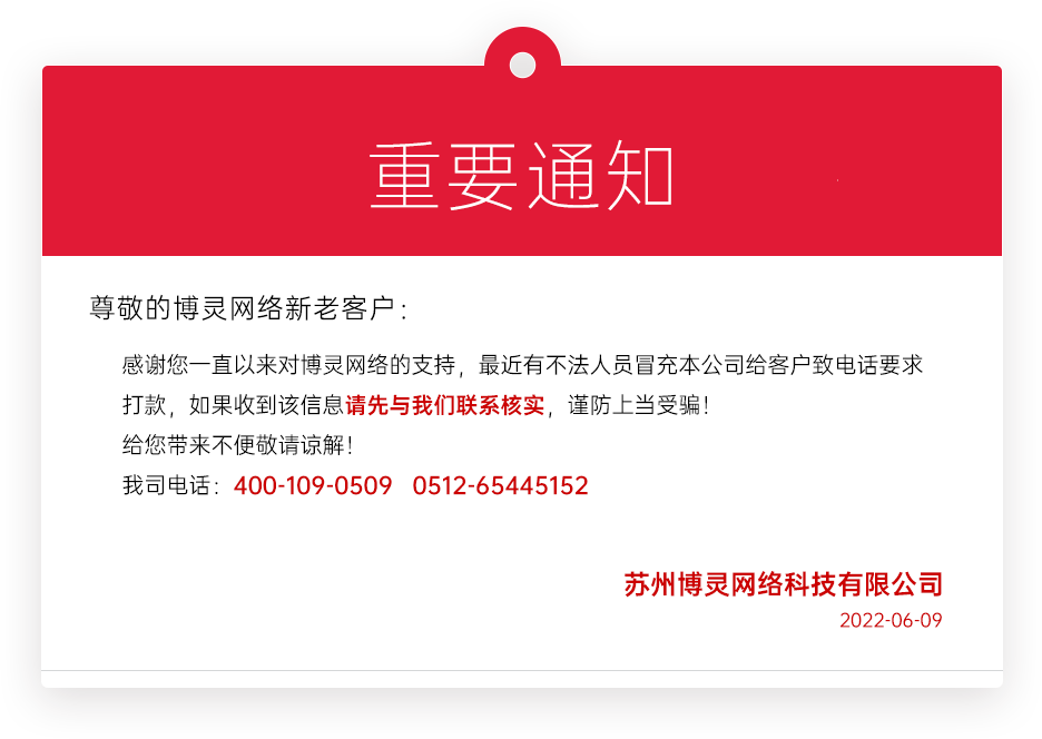 蘇州博靈網絡,重要通知如下。