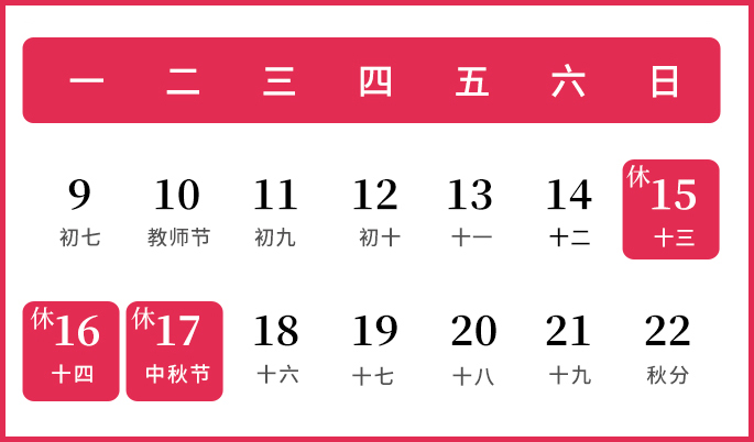 親愛的博靈新老客戶: 您好!又是一年中秋時,蘇州博靈網絡科技有限公司祝您團團圓圓,中秋快樂!根據國家規定結合我司的放假具體如下: 放假時間 9月15日~9月17日 開工時間 9月18日正式上班 中秋佳節來臨,首先預祝您和您的家人中秋快樂,蘇州博靈網絡科技有限公司感謝一路有您的支持,我們滿懷激動與欣喜在中秋團圓之際祝您生意興隆,萬事如意!